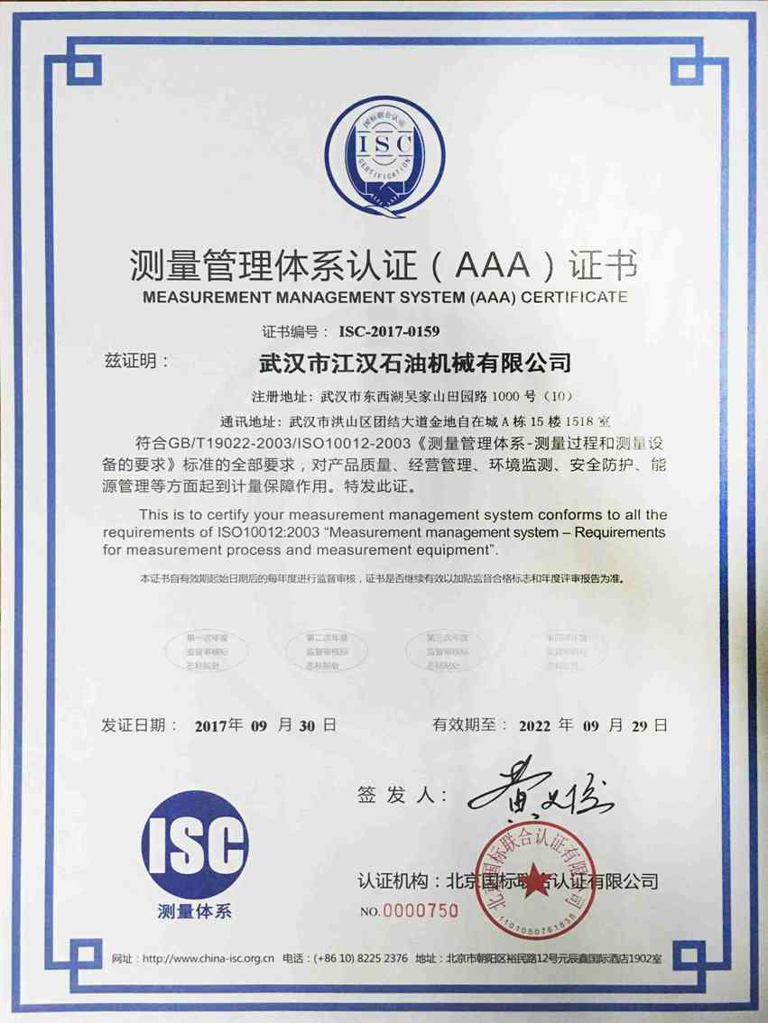 • 測(cè)量管理體系證書(shū)