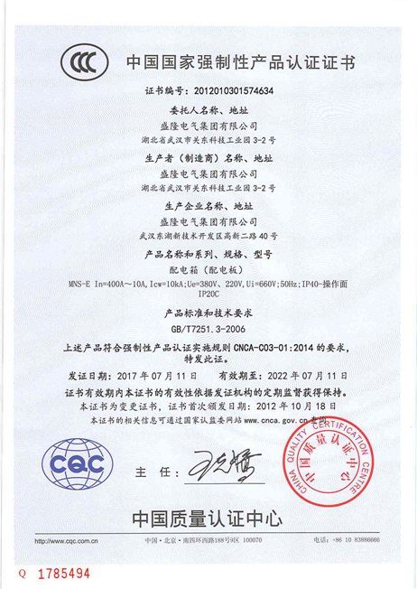 • 低壓成套CCC證書(shū)