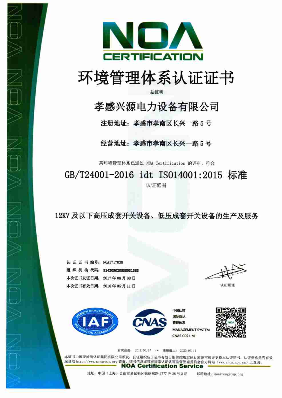 • 環(huán)境管理體系證書(shū)