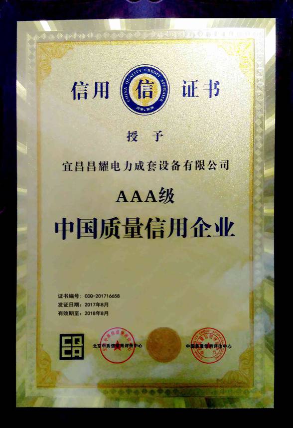 • 宜昌昌耀電力成套設(shè)備有限公司AAA證書(shū)