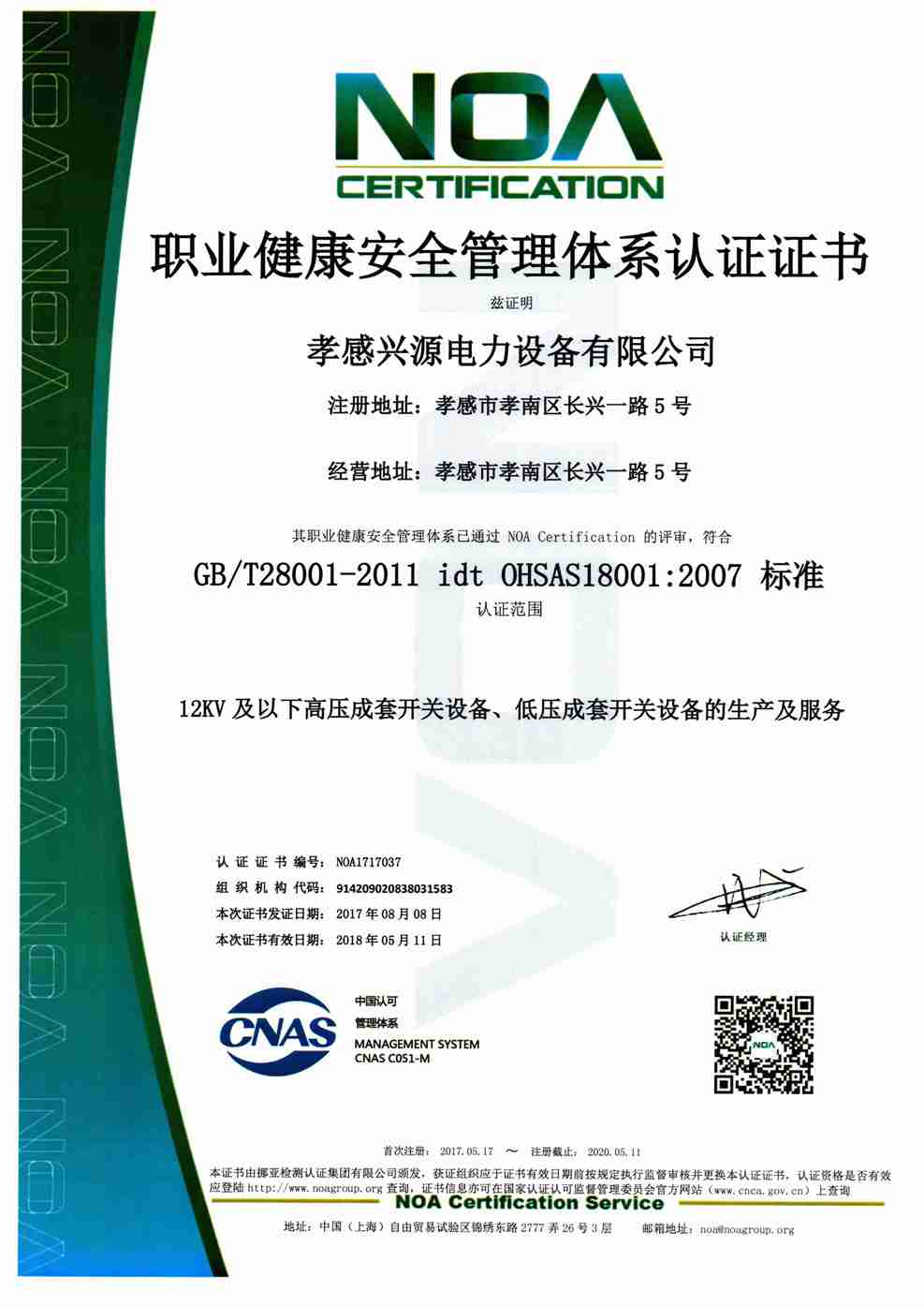 • 職業(yè)健康管理體系證書(shū)